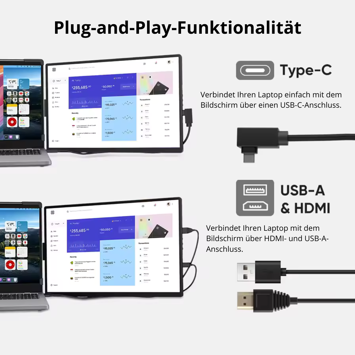 Verdoppeln Sie Ihren Bildschirmplatz unterwegs oder im Büro – perfekt für Multitasking und effizientes Arbeiten.